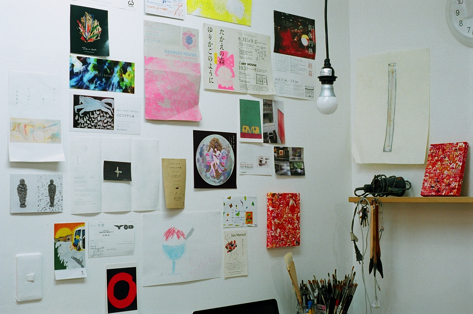 昔は、溜まってきたエネルギーを放出して絵を描いていた様な時期もあったんですけど、最近は少し変わってきました。この間結婚をして、絵に向かう気持ちも何か変わりました。もう、バイトをしてやっていく気もないし、開き直ったというか、とにかく絵で食べていきたいと思っています。絵を描いて、作品を売っていくというのも、もちろんそうなんですけど、こんな絵を描いていながら、心のどこかで、またイラストレーションを描きたいなとも思っているんです。バランスを取りながら、とにかく制作をしっかりしたい。そう思って毎日アトリエに来ています。